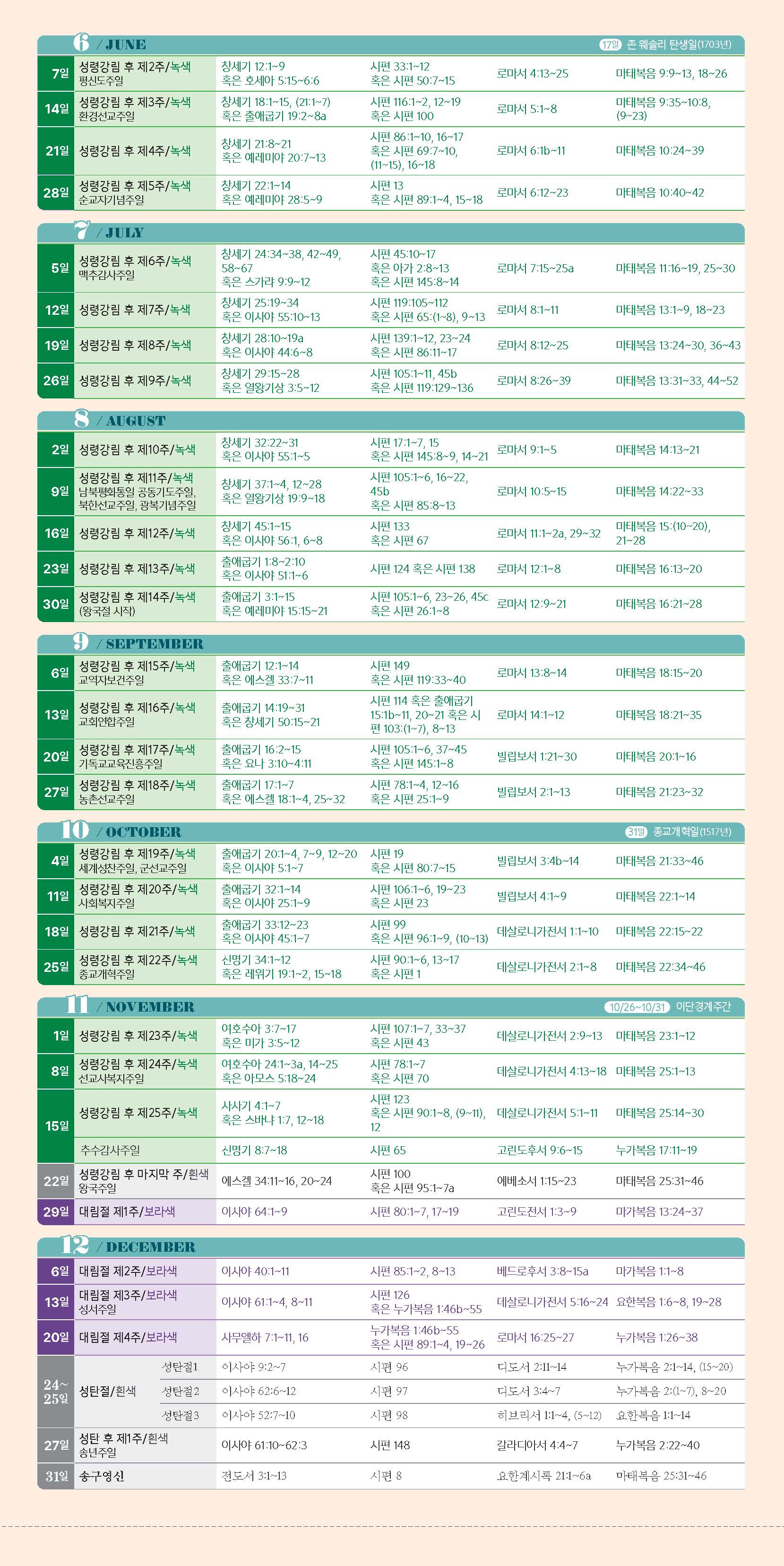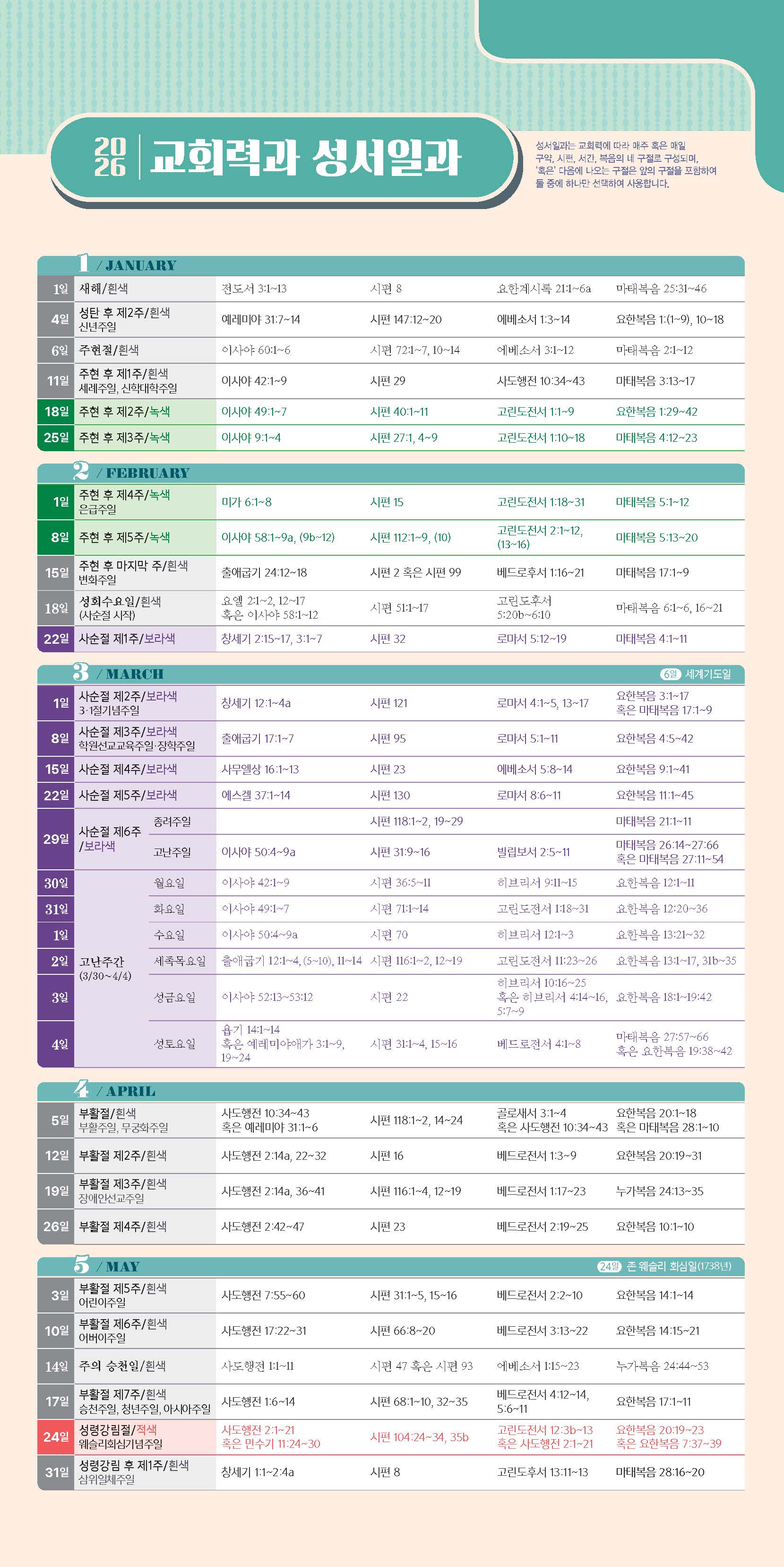 2026년 교회력과 성서일과