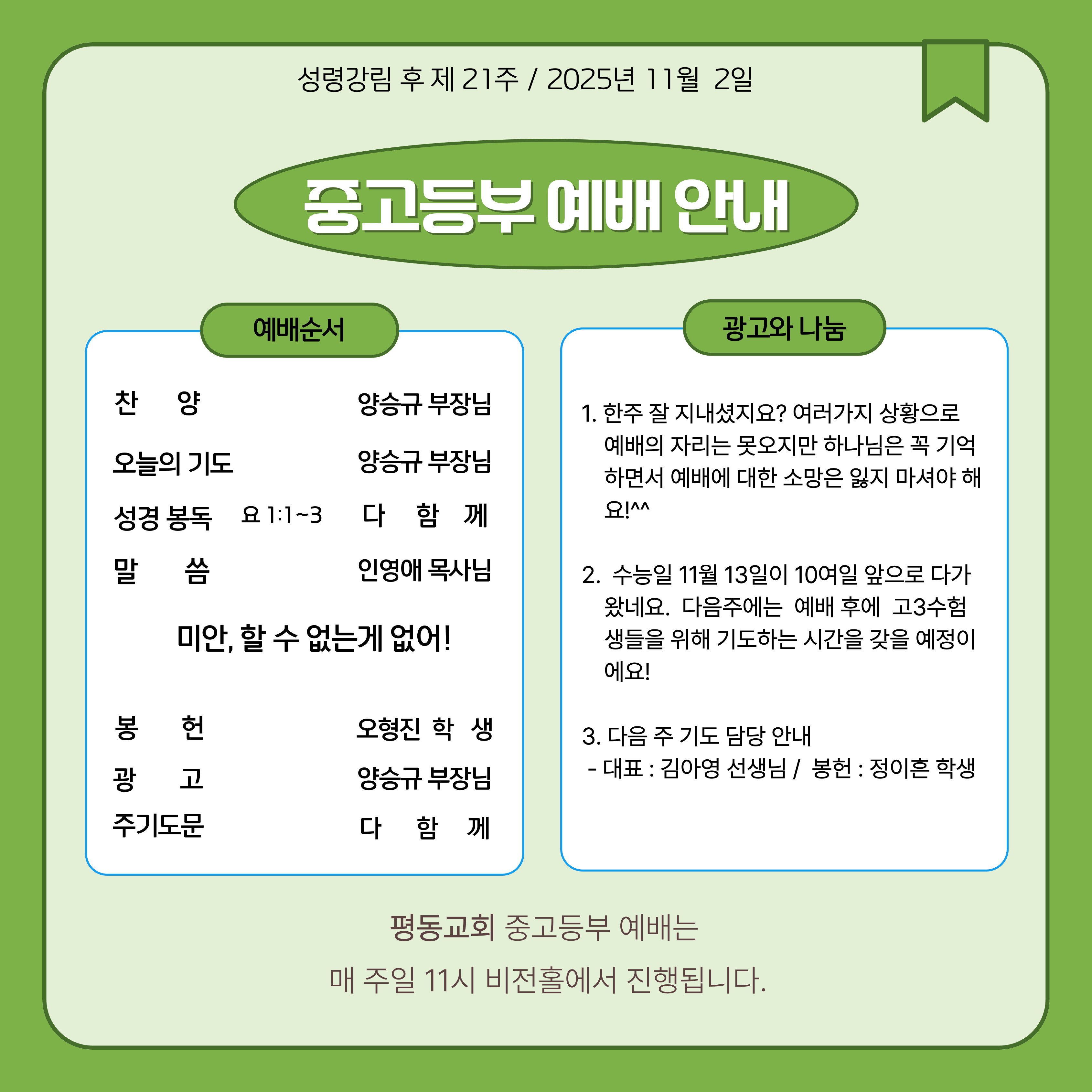 예배시간(헌금)안내