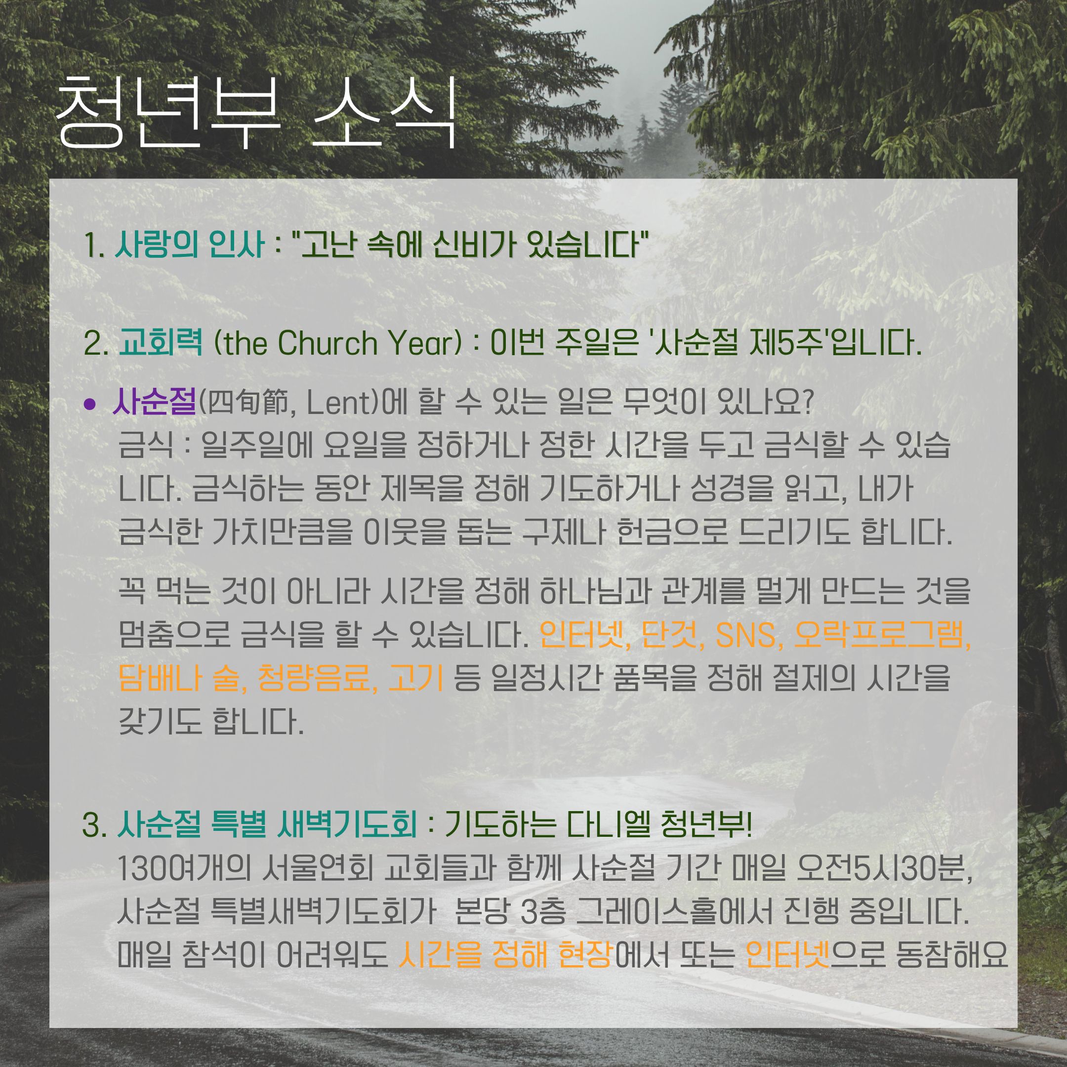 2026년 3월 셋째주 청년부 주보
