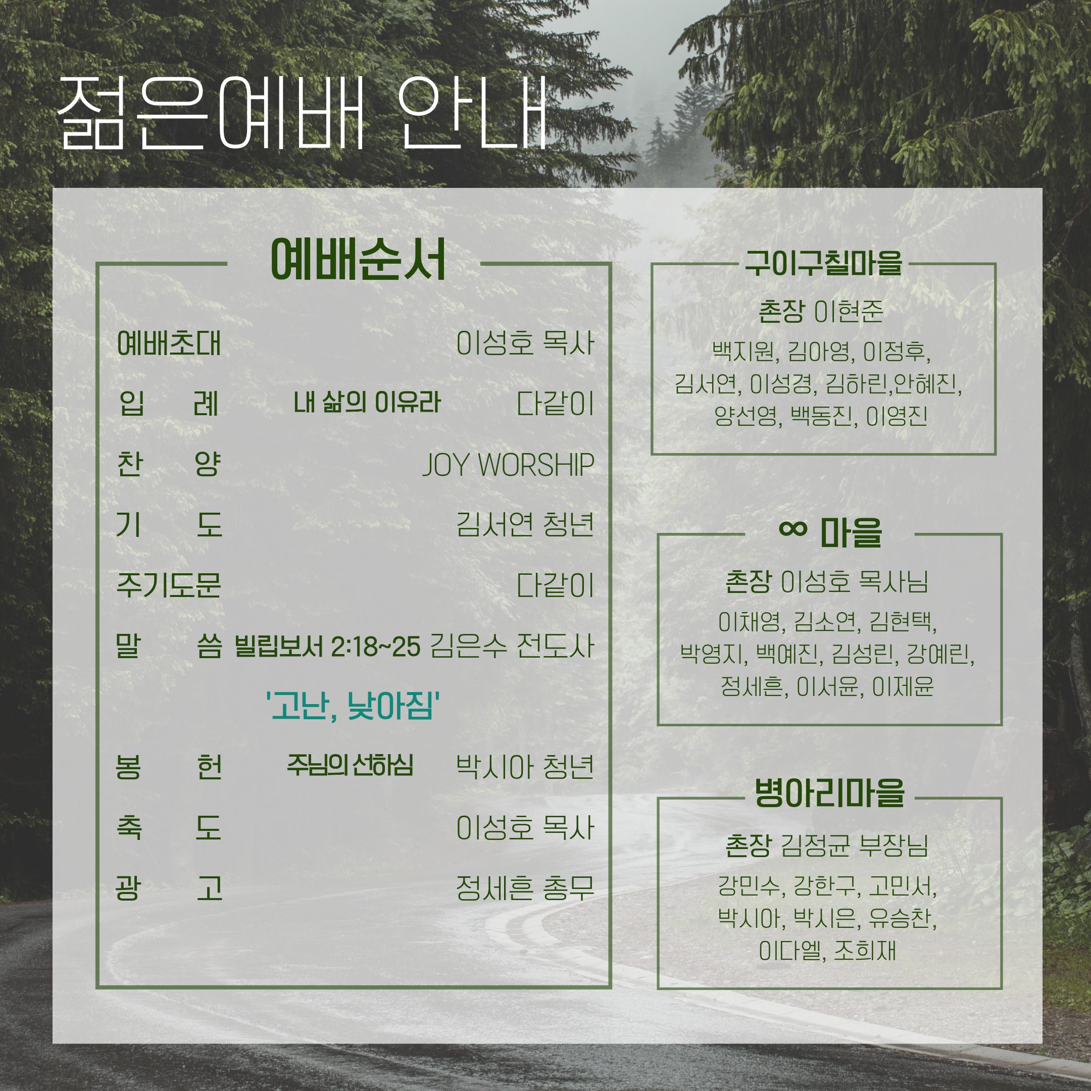 2026년 3월 넷째주 청년부 주보