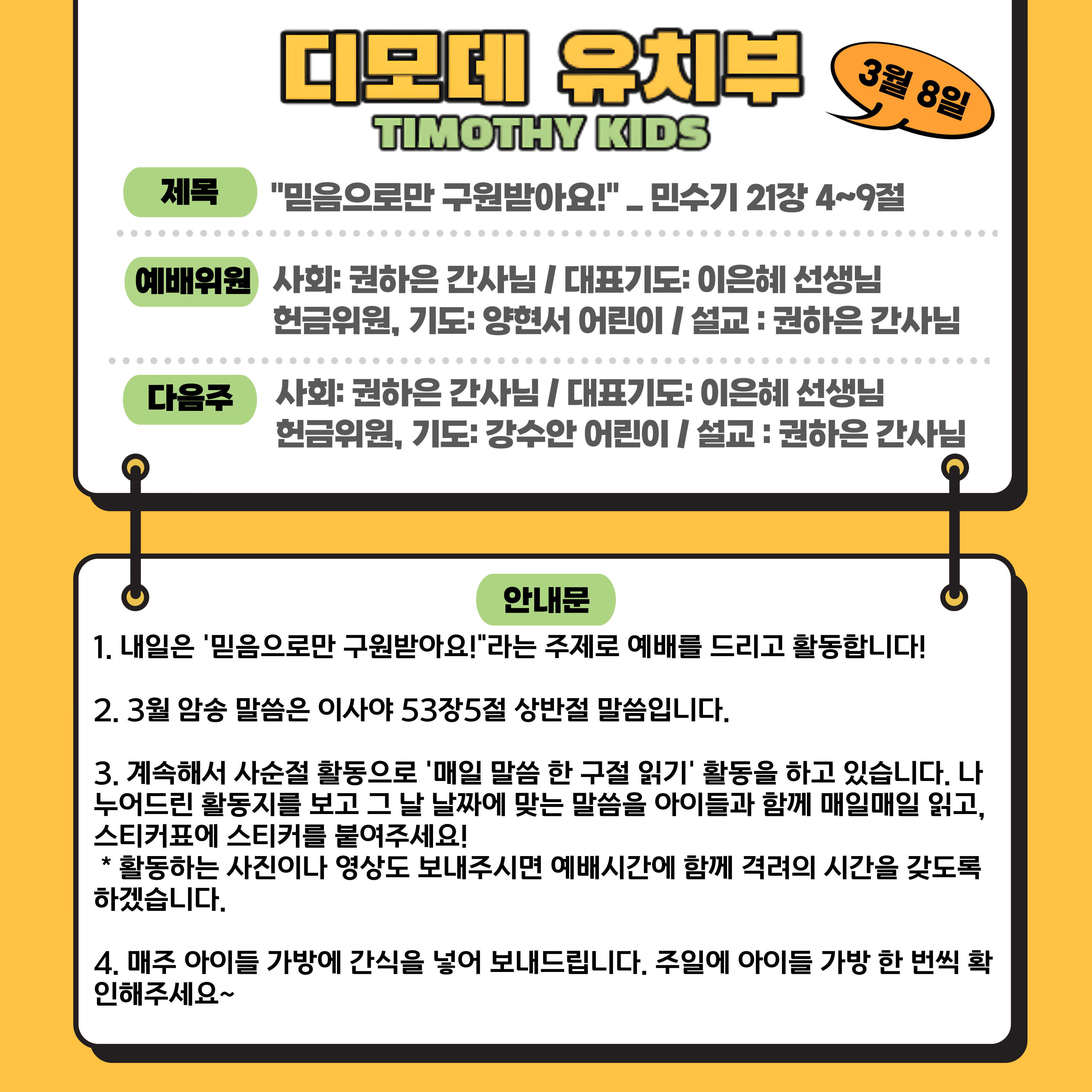 3월 8일 주일예배